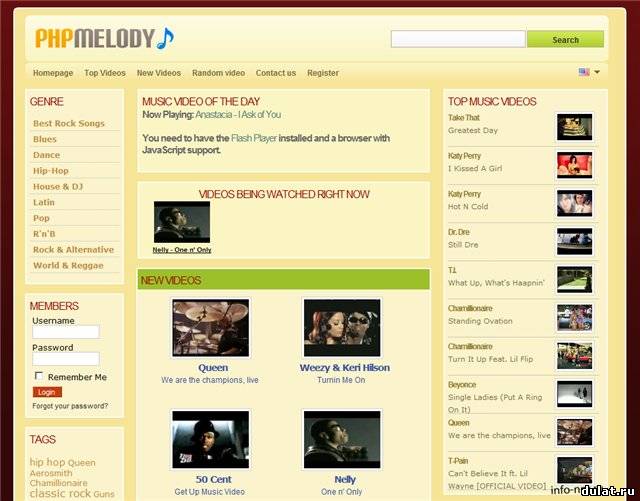PHP Melody v1.8.1 RUS Nulled - это отличный скрипт для создания своего мультимедийного сайта, поддерживает грабинг с видео сервисов, также вставка удалённых видео и загрузка своих файлов с компьютера. Вы сможете публиковать на своём сайте не только видео, а ещё и музыку!!!