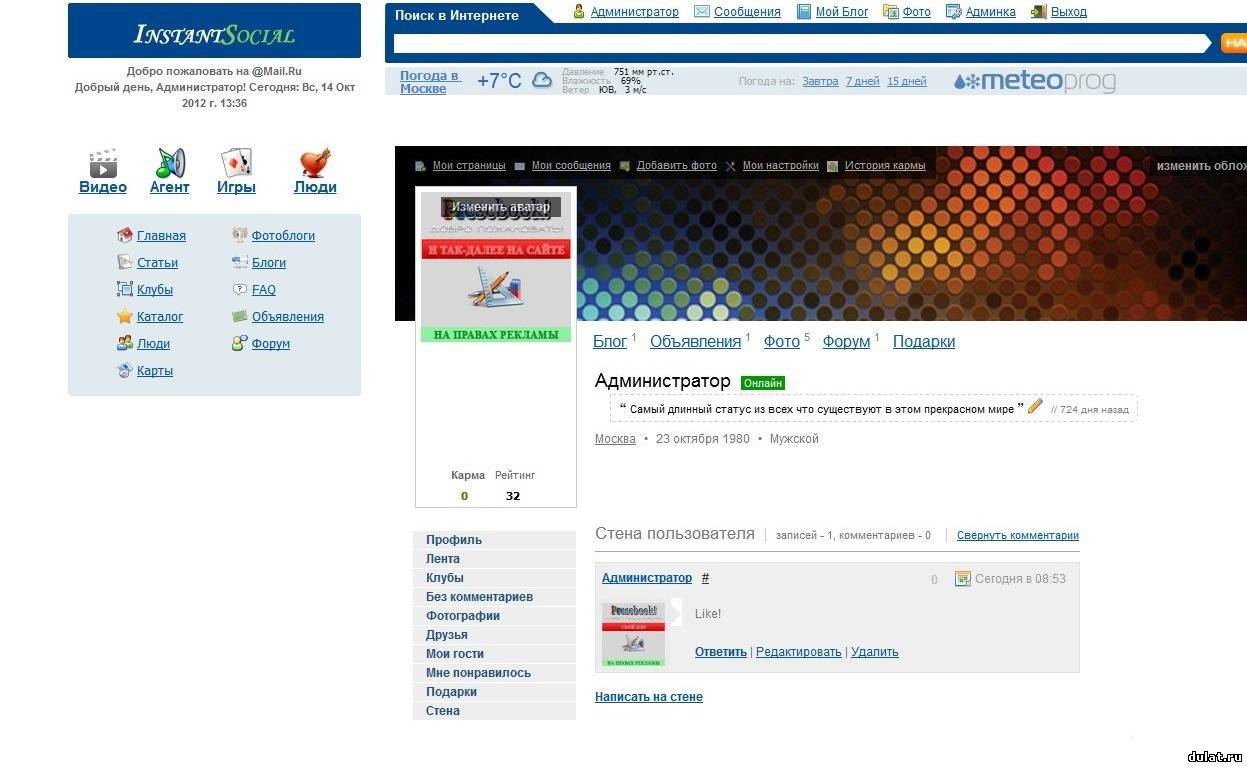 Клон @Mail.Ru (сборка на InstantCMS by Softober-InstantSocial)